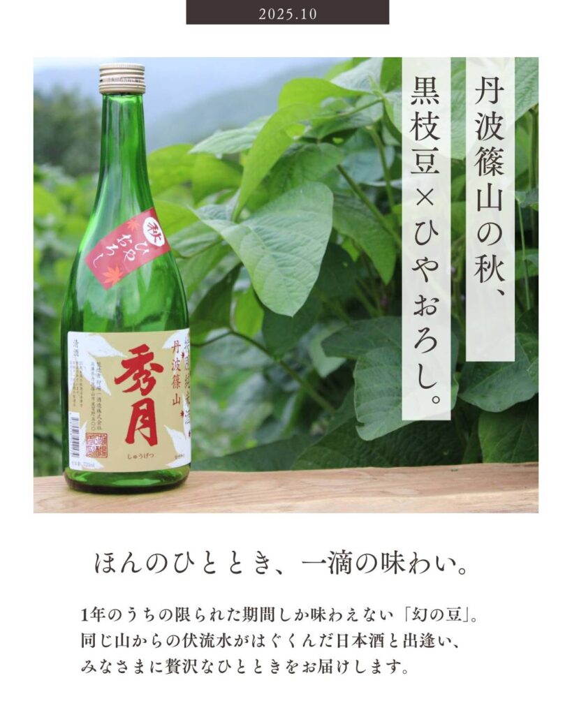 そこで狩場一酒造では、今年も「ひやおろし」と、吉良農園の枝豆をセットにした「秋の味覚セット」の、販売をおこないます。